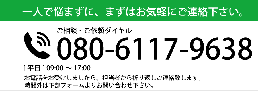 誰に相談して良いかわからず、放置してしまう人も多いです。迷わず当社にご相談下さい。